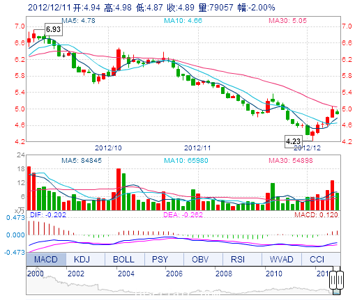 | 最 高: | 4.98 | 成交額: | 3889.70萬(wàn)元 | 換手率: | 0.89% |