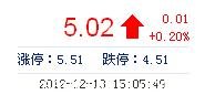 | 昨 收: | 5.01 | 流通市值: | 44.73億 | 市盈率TTM: | 29.95 |