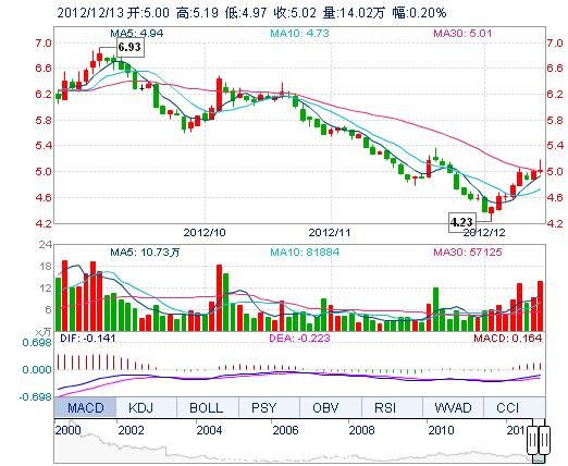 今開: 5.00 成交量: 14.02萬手 振幅: 4.39% 最高: 5.19 成交額: 7125.56萬元 換手率: 1.57% 最低: 4.97 總市值: 44.73億 市凈率: 1.71 昨收: 5.01 流通市值:...