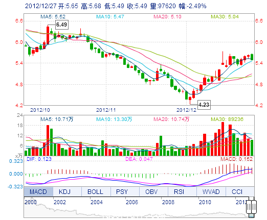 | 今 開: | 5.65 | 成交量: | 9.76萬手 | 振 幅: | 3.37% |