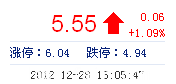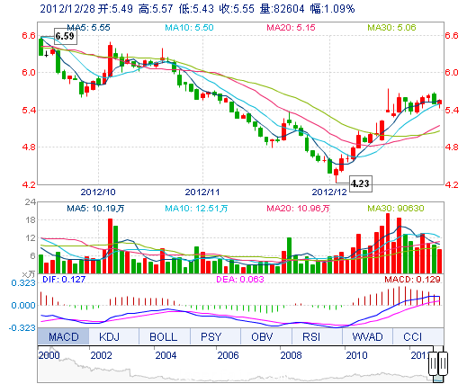今開: 5.49 成交量: 8.26萬手 振幅: 2.55% 最高: 5.57 成交額: 4552.01萬元 換手率: 0.93% 最低: 5.43 總市值: 49.46億 市凈率: 1.89 昨收: 5.49 流通市值: ...