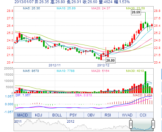 今 開: 26.35 成交量: 4624手 振 幅: 3.02% 最 高: 26.80 成交額: 1226.99萬元 換手率: 4.42% 最 低: 26.01 總市值: 9.31億 市凈率: 3.24 昨 收: 26.20 流通...