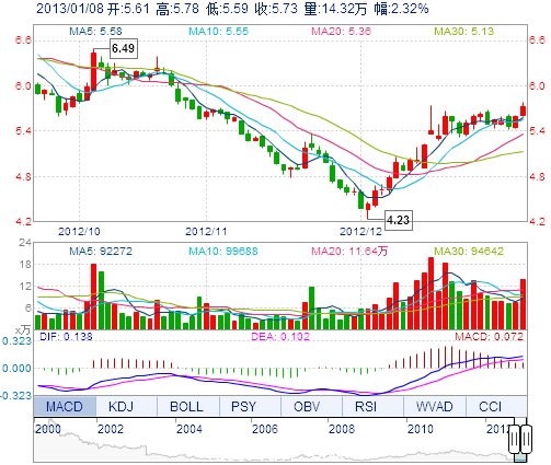 | 昨 收: | 5.60 | 流通市值: | 51.06億 | 市盈率TTM: | 34.19 |