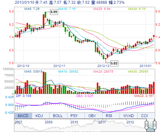 今 開: 7.45 成交量: 4.90萬手 振 幅: 3.42% 最 高: 7.57 成交額: 3654.09萬元 換手率: 2.52% 最 低: 7.32 總市值: 14.98億 市凈率: 3.02 昨 收: 7.32 流通市...