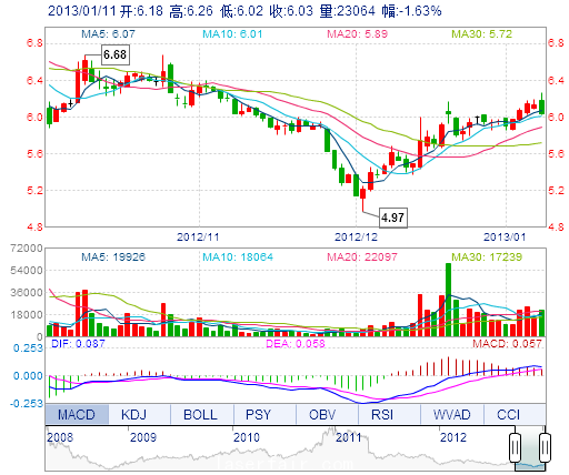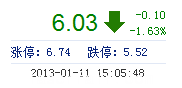 | 昨 收: | 6.13 | 流通市值: | 16.58億 | 市盈率TTM: | 33.40 |