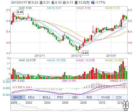 | 最 低: | 6.10 | 總市值: | 54.45億 | 市凈率: | 2.09 |