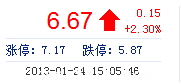 今 開: | 6.45 | 成交量: | 11.03萬手 | 振 幅: | 7.21% |