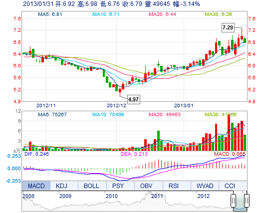 | 今 開: | 6.92 | 成交量: | 4.96萬手 | 振 幅: | 3.14% |