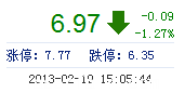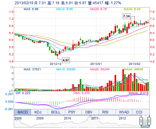 | 今 開: | 7.01 | 成交量: | 4.54萬手 | 振 幅: | 3.82% |