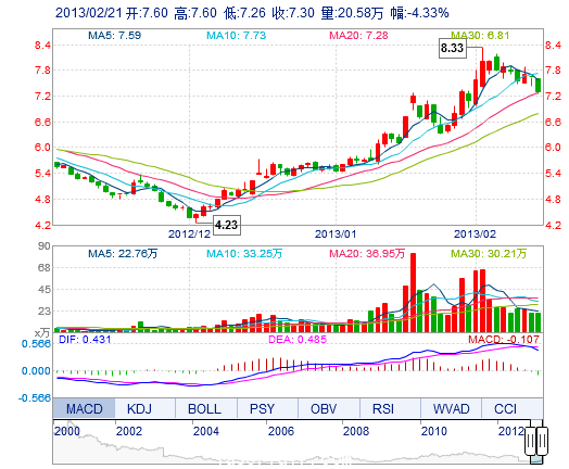 | 昨 收: | 7.63 | 流通市值: | 65.05億 | 市盈率TTM: | 43.55 |