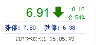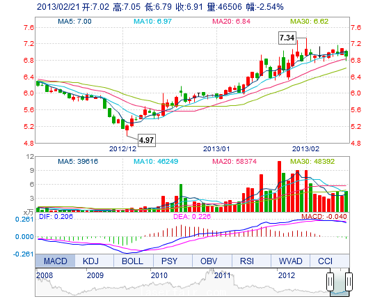 | 今 開: | 7.02 | 成交量: | 4.65萬手 | 振 幅: | 3.67% |