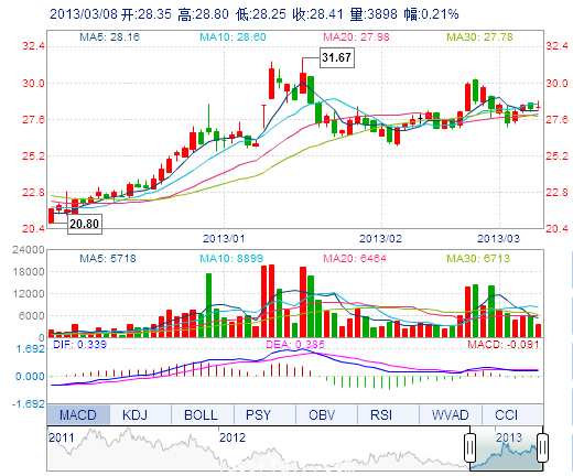 | 最 低: | 28.25 | 總市值: | 9.94億 | 市凈率: | 3.46 |