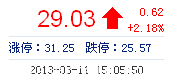 | 今 開: | 29.85 | 成交量: | 1.55萬手 | 振 幅: | 4.22% |