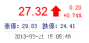 | 今 開: | 27.20 | 成交量: | 3152手 | 振 幅: | 2.99% |