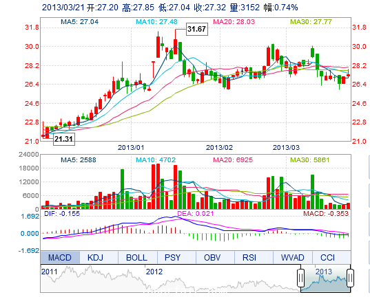 | 最 低: | 27.04 | 總市值: | 9.56億 | 市凈率: | 3.39 |