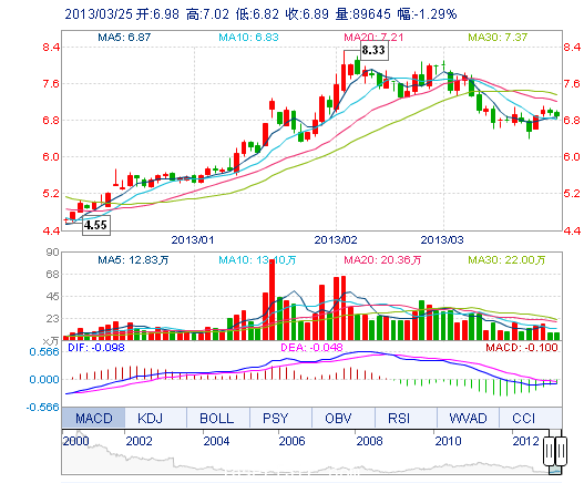 | 最 低: | 6.82 | 總市值: | 61.40億 | 市凈率: | 2.35 |