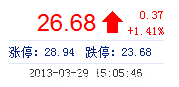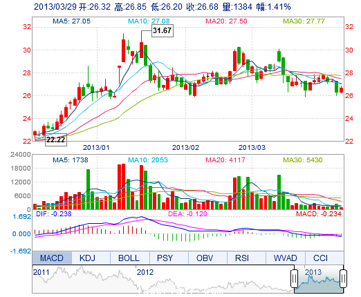 | 最 低: | 26.20 | 總市值: | 9.34億 | 市凈率: | 3.31 |