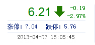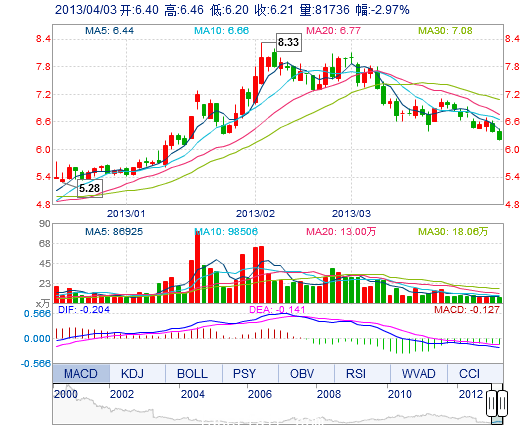 | 今 開: | 6.40 | 成交量: | 8.17萬手 | 振 幅: | 4.06% |