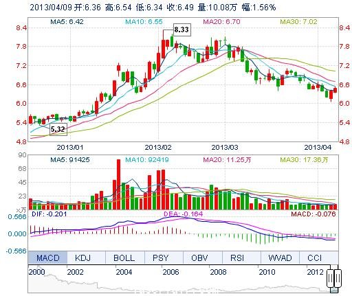 今開: 6.36 成交量: 10.08萬手 振幅: 3.13% 最高: 6.54 成交額: 6488.50萬元 換手率: 1.13% 最低: 6.34 總市值: 57.83億 市凈率: 2.21 昨收: 6.39 流通市值:...