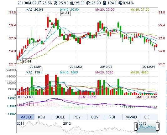| 最 低: | 25.30 | 總市值: | 9.07億 | 市凈率: | 3.21 |