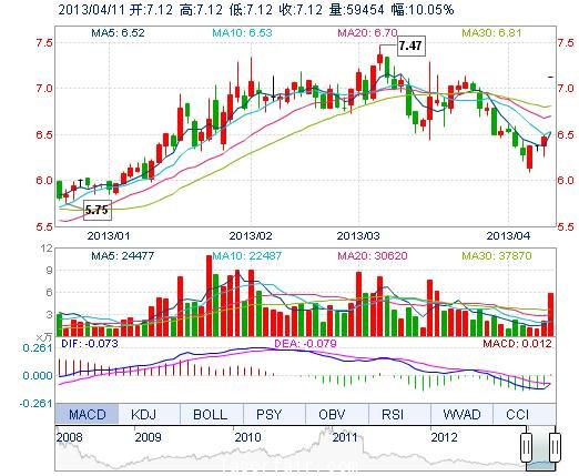 今開: 7.12 成交量: 5.95萬手 振幅: 0.00% 最高: 7.12 成交額: 4233.12萬元 換手率: 2.16% 最低: 7.12 總市值: 20.29億 市凈率: 3.31 昨收: 6.47 流通市值: ...
