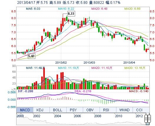 | 最 低: | 5.73 | 總市值: | 51.68億 | 市凈率: | 1.98 |