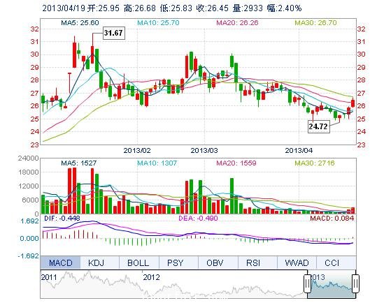 | 最 低: | 25.83 | 總市值: | 9.26億 | 市凈率: | 3.28 |