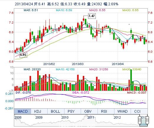 | 今 開: | 6.41 | 成交量: | 2.44萬手 | 振 幅: | 3.01% |