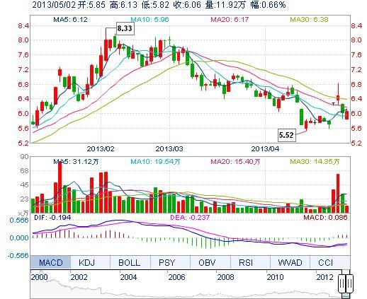 今開: 5.85 成交量: 11.92萬手 振幅: 5.15% 最高: 6.13 成交額: 7182.22萬元 換手率: 1.34% 最低: 5.82 總市值: 54.00億 市凈率: 2.06 昨收: 6.02 流通市值:...