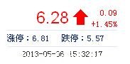 今開: 6.16 成交量: 17.33萬手 振幅: 3.07% 最高: 6.30 成交額: 1.08億元 換手率: 1.94% 最低: 6.11 總市值: 55.96億 市凈率: 2.13 昨收: 6.19 流通市值: 55...