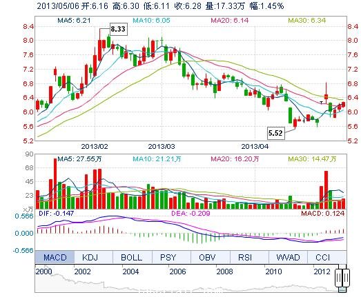| 最 低: | 6.11 | 總市值: | 55.96億 | 市凈率: | 2.13 |