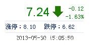 今開: 7.30 成交量: 26.57萬手 振幅: 4.35% 最高: 7.52 成交額: 1.95億元 換手率: 2.98% 最低: 7.20 總市值: 64.52億 市凈率: 2.46 昨收: 7.36 流通市值: 64...