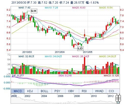 | 今 開: | 7.30 | 成交量: | 26.57萬手 | 振 幅: | 4.35% |