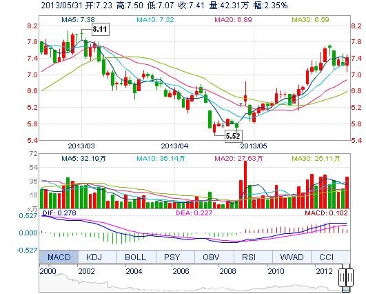 今開: 7.23 成交量: 42.31萬手 振幅: 5.94% 最高: 7.50 成交額: 3.09億元 換手率: 4.75% 最低: 7.07 總市值: 66.03億 市凈率: 2.51 昨收: 7.24 流通市值: 66...