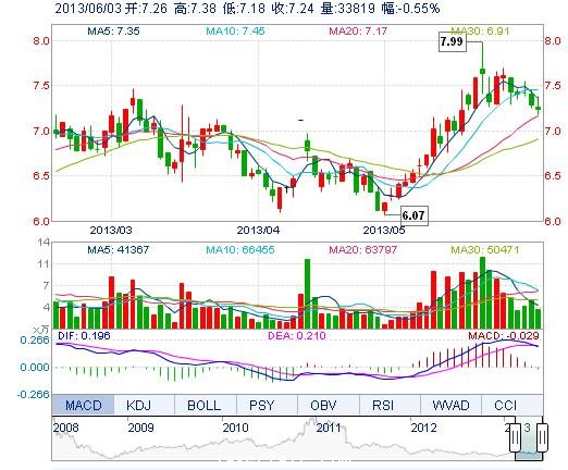 | 今 開: | 7.26 | 成交量: | 3.38萬手 | 振 幅: | 2.75% |