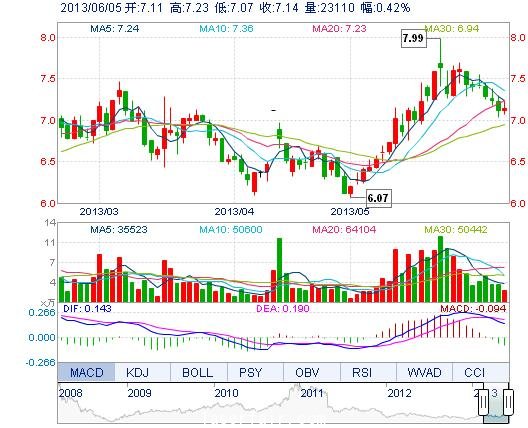 今開: 7.11 成交量: 2.31萬手 振幅: 2.25% 最高: 7.23 成交額: 1653.48萬元 換手率: 0.84% 最低: 7.07 總市值: 20.35億 市凈率: 3.23 昨收: 7.11 流通市值: ...