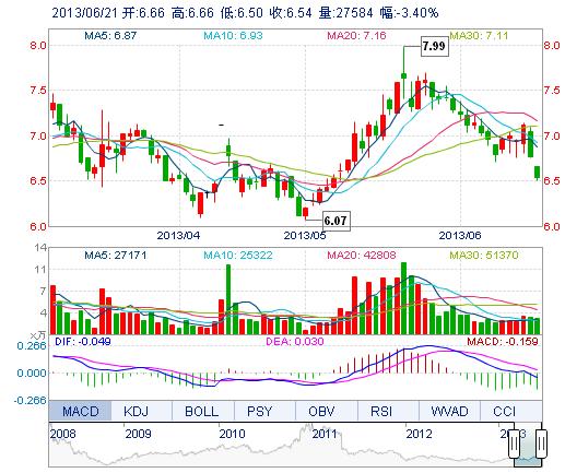 | 今 開: | 6.66 | 成交量: | 2.76萬手 | 振 幅: | 2.36% |