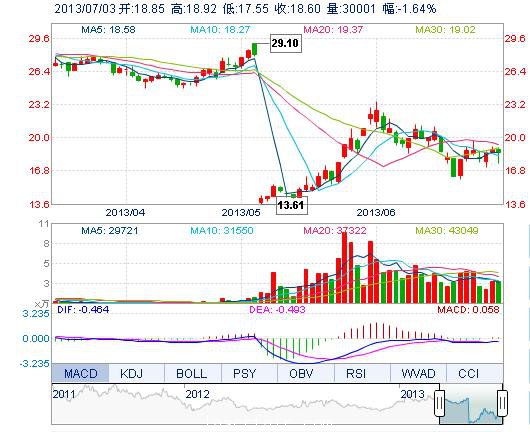| 今 開: | 18.85 | 成交量: | 3.00萬手 | 振 幅: | 7.24% |
