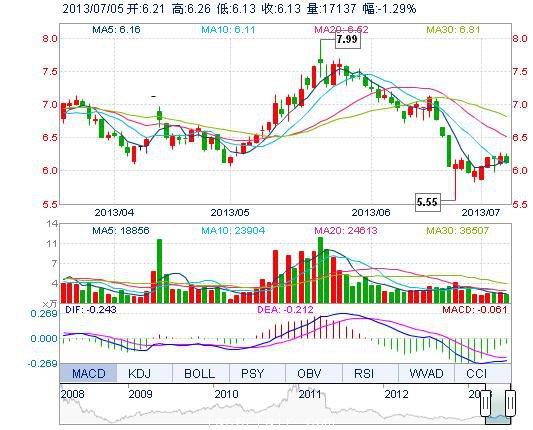 | 今 開: | 6.21 | 成交量: | 1.71萬手 | 振 幅: | 2.09% |