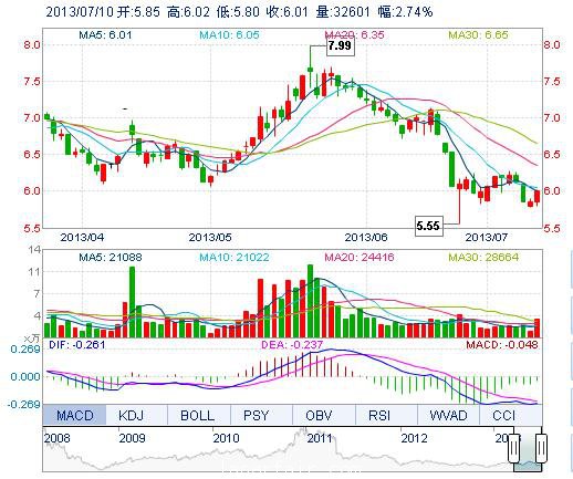 今開: 5.85 成交量: 3.26萬手 振幅: 3.76% 最高: 6.02 成交額: 1920.29萬元 換手率: 1.19% 最低: 5.80 總市值: 17.13億 市凈率: 2.72 昨收: 5.85 流通市值: ...