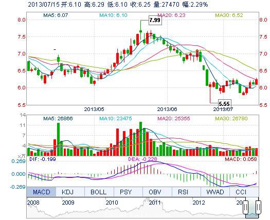 | 今 開: | 6.10 | 成交量: | 2.75萬手 | 振 幅: | 3.11% |