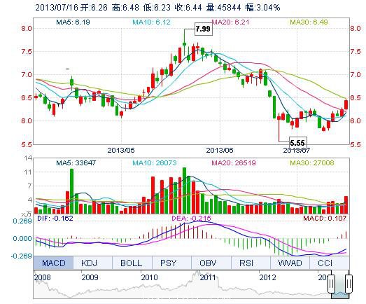 | 今 開: | 6.26 | 成交量: | 4.58萬手 | 振 幅: | 4.00% |