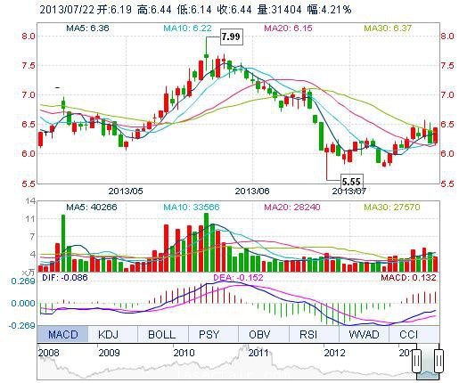 今開: 6.19 成交量: 3.14萬手 振幅: 4.85% 最高: 6.44 成交額: 1982.39萬元 換手率: 1.14% 最低: 6.14 總市值: 18.35億 市凈率: 2.92 昨收: 6.18 流通市值: ...