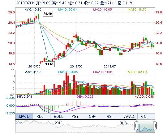 | 最 低: | 18.71 | 總市值: | 13.24億 | 市凈率: | 2.31 |