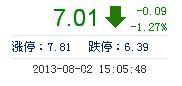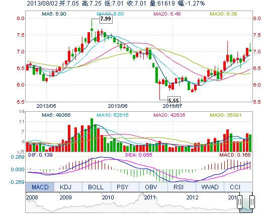 今開: 7.05 成交量: 6.16萬手 振幅: 3.38% 最高: 7.25 成交額: 4381.49萬元 換手率: 2.24% 最低: 7.01 總市值: 19.98億 市凈率: 3.18 昨收: 7.10 流通市值: ...