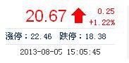 | 最 高: | 21.12 | 成交額: | 4183.25萬元 | 換手率: | 9.37% |