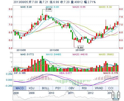今開: 7.00 成交量: 4.99萬手 振幅: 3.14% 最高: 7.21 成交額: 3566.62萬元 換手率: 1.82% 最低: 6.99 總市值: 20.52億 市凈率: 3.26 昨收: 7.01 流通市值: ...