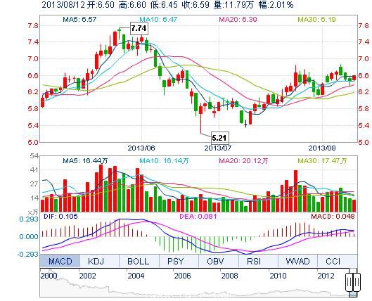 | 今 開: | 6.50 | 成交量: | 11.79萬(wàn)手 | 振 幅: | 2.32% |