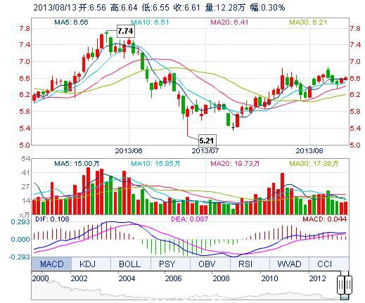 今開: 6.56 成交量: 12.28萬手 振幅: 1.37% 最高: 6.64 成交額: 8095.56萬元 換手率: 1.38% 最低: 6.55 總市值: 58.90億 市凈率: 2.24 昨收: 6.59 流通市值:...