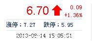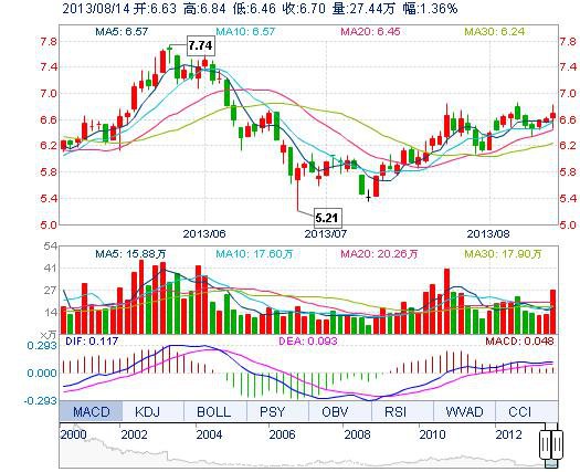 今開: 6.63 成交量: 27.44萬手 振幅: 5.75% 最高: 6.84 成交額: 1.82億元 換手率: 3.08% 最低: 6.46 總市值: 59.70億 市凈率: 2.27 昨收: 6.61 流通市值: 59...